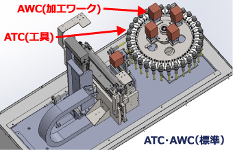 (ATC/AWC含む)1700×1590×1700mm 機械重量 3,000kg ATC 20本標準/30本(OP)HSK-E32 AWC 4本標準/8本(OP)EROWA/3R MACRO 制御装置 CNC、M80 TypeA(IoT対応)